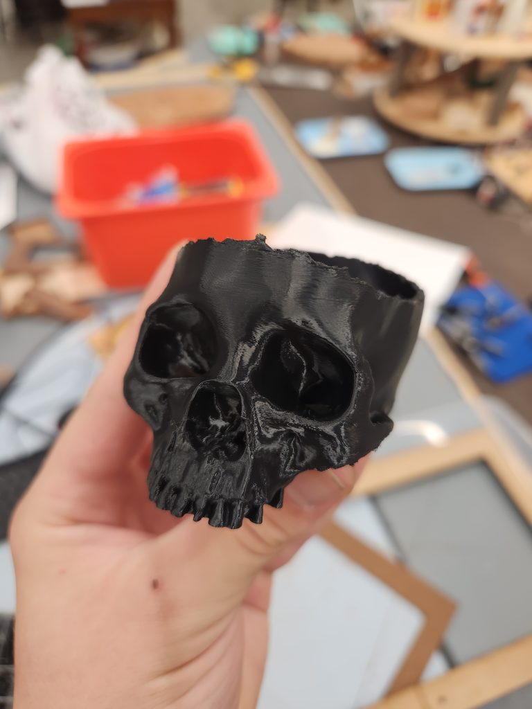One of the projects I did this quarter was make a skull on the 3D printer. The first step to this project was downloading the file from printable. After that I put it onto the computer, sliced it and printed it. Peter helped with the process of slicing it.