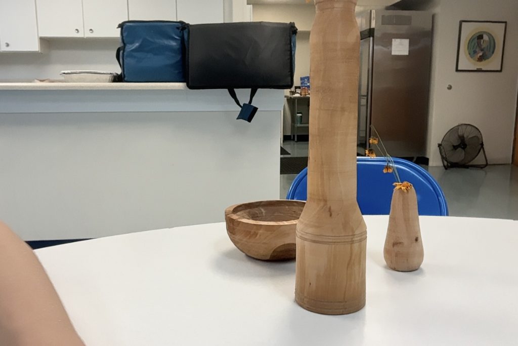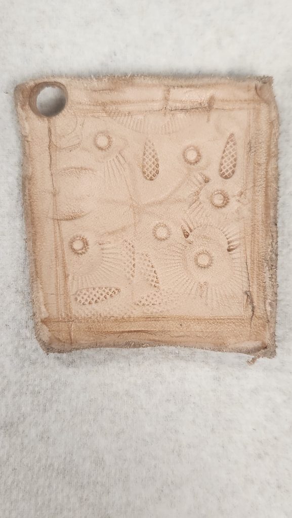 The process was a little long but I finished my leather key chain. The process was first started by cutting the leather with a very pointy tool. Then I learned to wet the piece of leather. Next, I would smooth the edges by a tool that’s kinda like a thing you put in honey. then I did the designs on the leather, the tools were different shapes and patterns on them, they kinda looked like stamps. Then I would poke the hole with a tool that looks like a pen. This whole process was also done with Dr. Urbano teaching me how to do it.