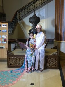 Today, I saw a newly married couple. They were wearing traditional clothing on their wedding day.